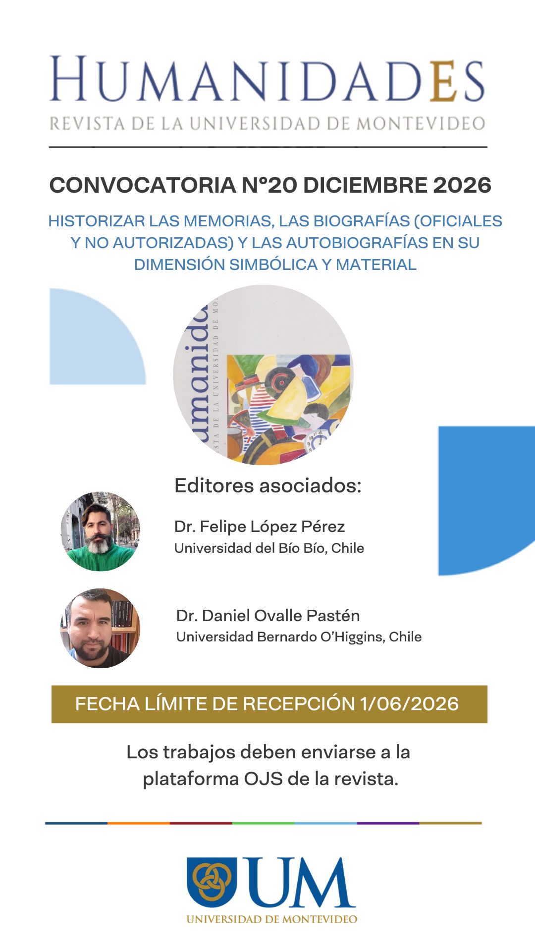 Las colaboraciones deben ajustarse a las normas editoriales de la revista: http://revistas.um.edu.uy/index.php/revistahumanidades/about/submissions
