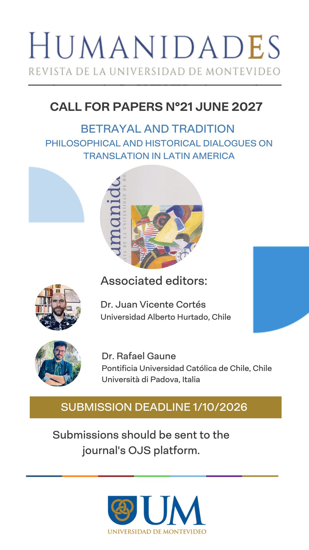 CONVOCATORIA ABIERTA para el Nº21, junio 2027, "Traición y tradición. Diálogos filosófico-históricos de la traducción en América Latina"